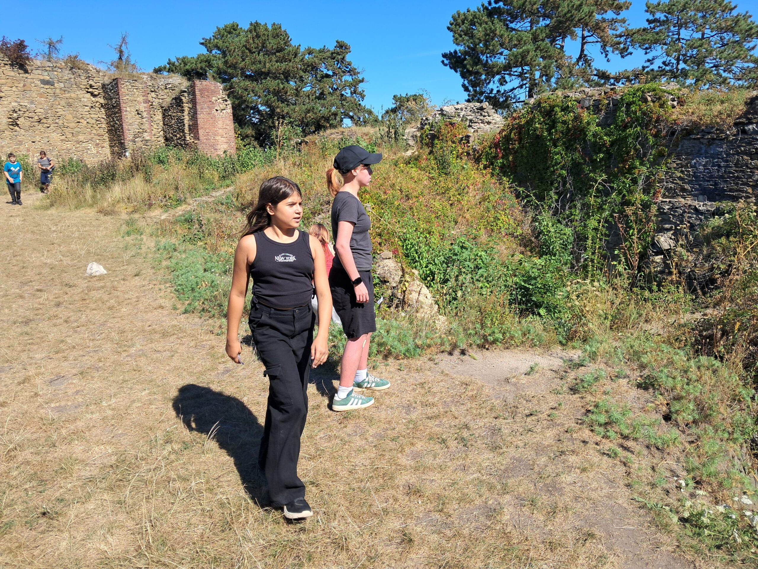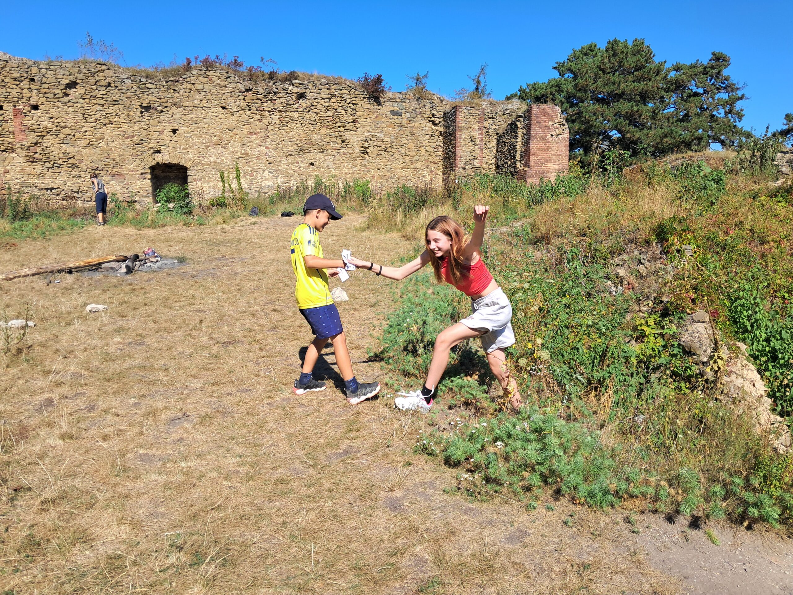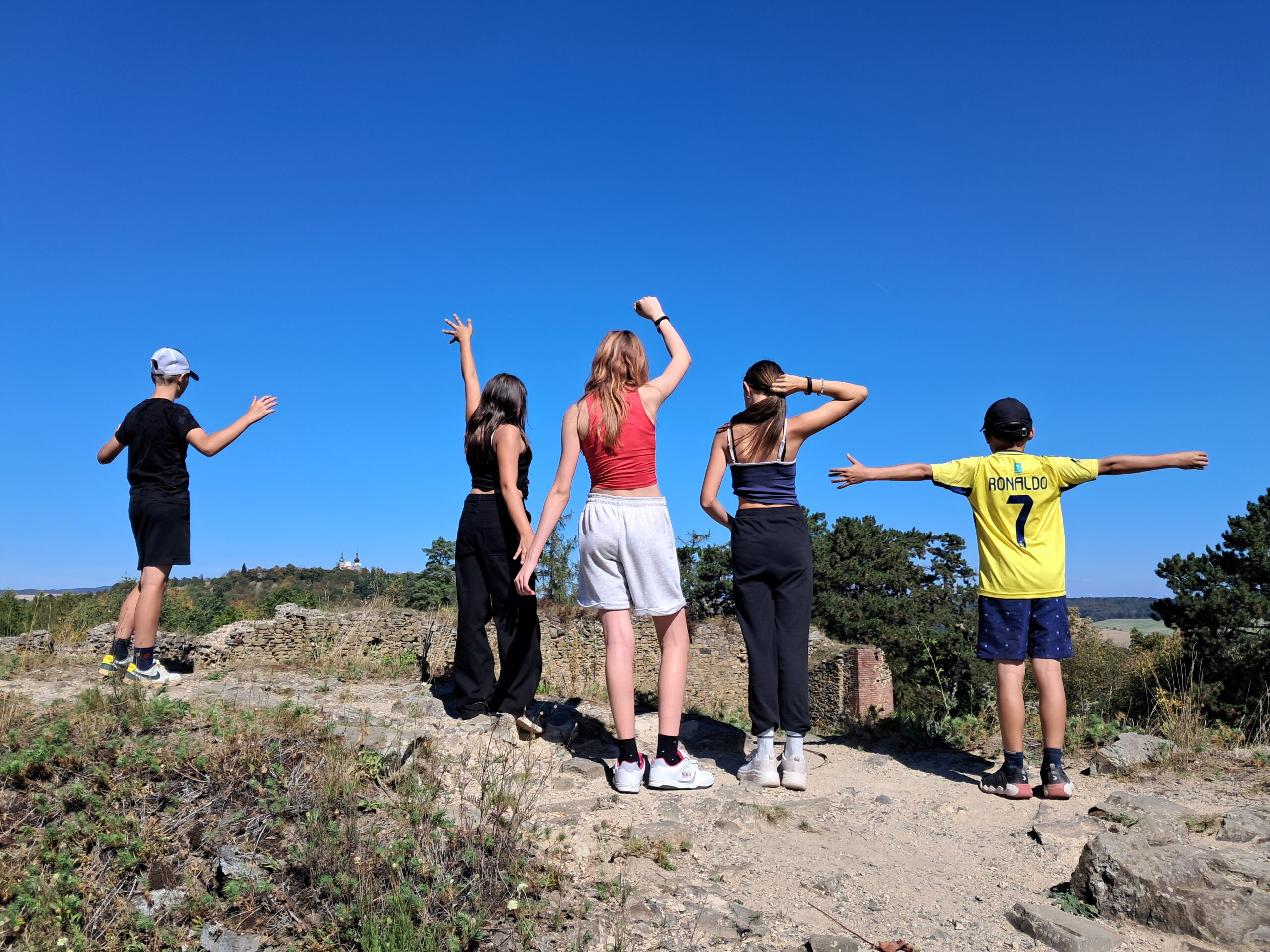 Ve čtvrtek 4. září jsme společně s paní Andrysovou a dětmi vyrazili do Krnova. Po vystoupení z vlaku děti dostaly mapy, podle kterých nás měly dovést na Cvilín. Jako nejlepší vůdce se ukázal Petr a Alexandra. Zdárně jsme překonali spletité ulice Krnova a došli až na vrcholek. Schody si někteří zkusili vyběhnout v co nejkratším čase. No, limit minuty nepokořili, ale i tak to byl dobrý čas – necelé dvě minuty. Zájemci se mohli podívat dovnitř kostela. Někteří překonali strach z výšek a vylezli až nahoru na rozhlednu. Společně jsme pokračovali dál ke zřícenině. Nachystala jsem zde jednoduchou hru, kdy měly děti najít lístečky a složit zprávu.